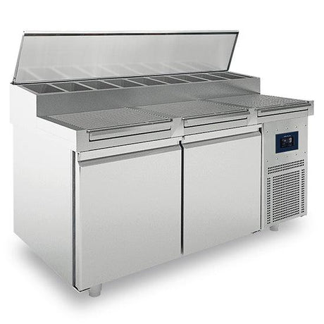 Table de préparation réfrigérée avec 2 portes 600x400 mm, 8x GN 1/3 h=150 mm, 0°/+10°C