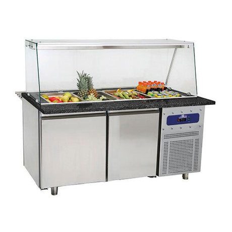 Table de préparation réfrigérée avec 2 portes et vitre vertical, 3x GN 1/1, 0°/+10°C