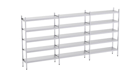 Rayonnage en acier inoxydable linéaires 5350x500 lisse 5 niveaux- DISTFORM - KIT00732