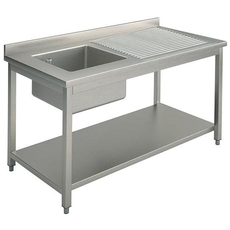 plonge, 1 bac, égouttoir à droite, sur piètement, avec étagère inférieure, 1400x600 mm