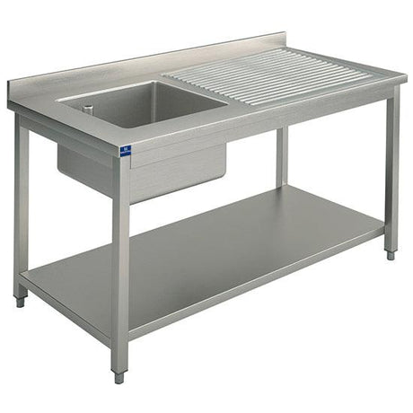 plonge sur piètement avec étagère inférieure, place pour lave-vaisselle, 1 bac à droite, 1400x600 mm