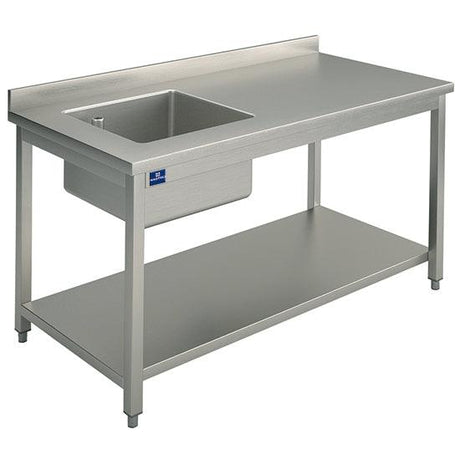 table de travail avec bac à gauche, avec dosseret, avec étagère, 1500x700 mm