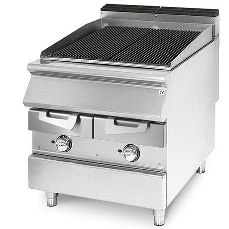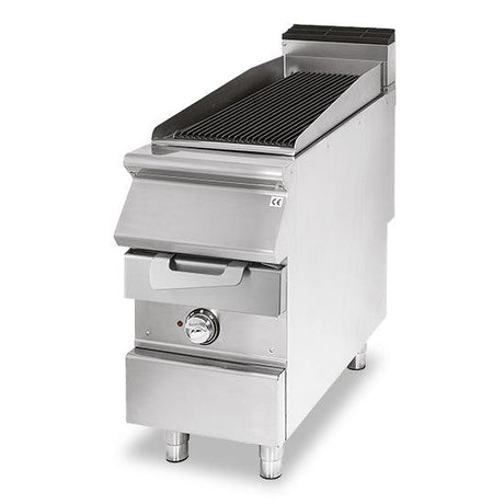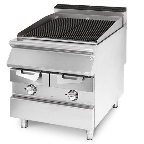 Grillade gaz en pierre lavique, zone de cuisson en fonte, viande/poisson
